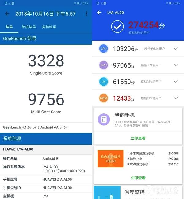 Mate 20 Pro跑分(安兔兔似乎低于Mate20平均分 可能是工程機(jī)的原因)