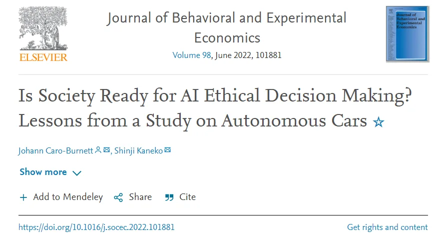 “事實上,當(dāng)參與者被明確要求將他們的答案與社會的答案區(qū)分開來時,人工智能和人類司機(jī)之間的差異就會消失!睆V島大學(xué)人文社會科學(xué)研究生院助理教授 Johann Caro-Burnett 說。